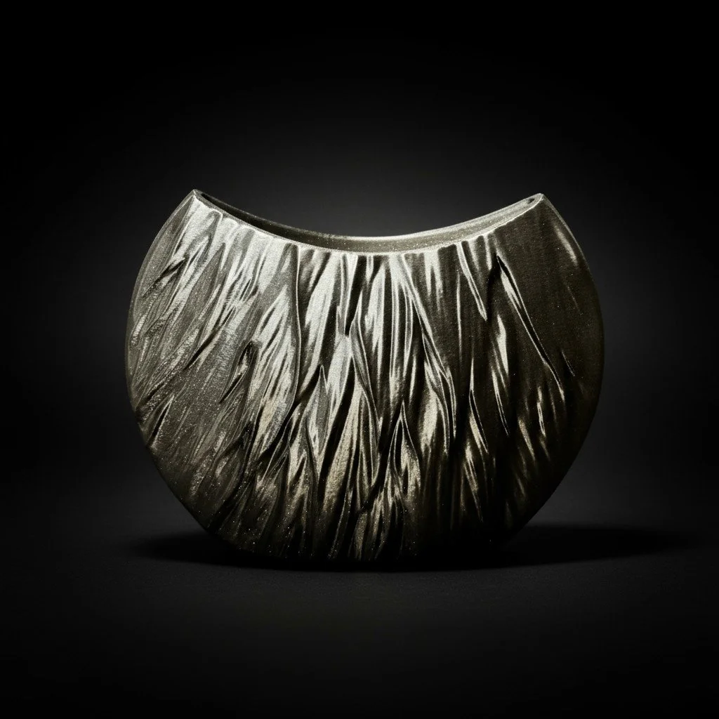 3D printed in matte PLA, this vase showcases the precision of digital fabrication while maintaining a tactile, hand-finished quality. Perfect for dried flowers, grasses, or minimalist sculptural styling, it reflects the Axis Black philosophy — where design meets discipline and modern luxury takes form.